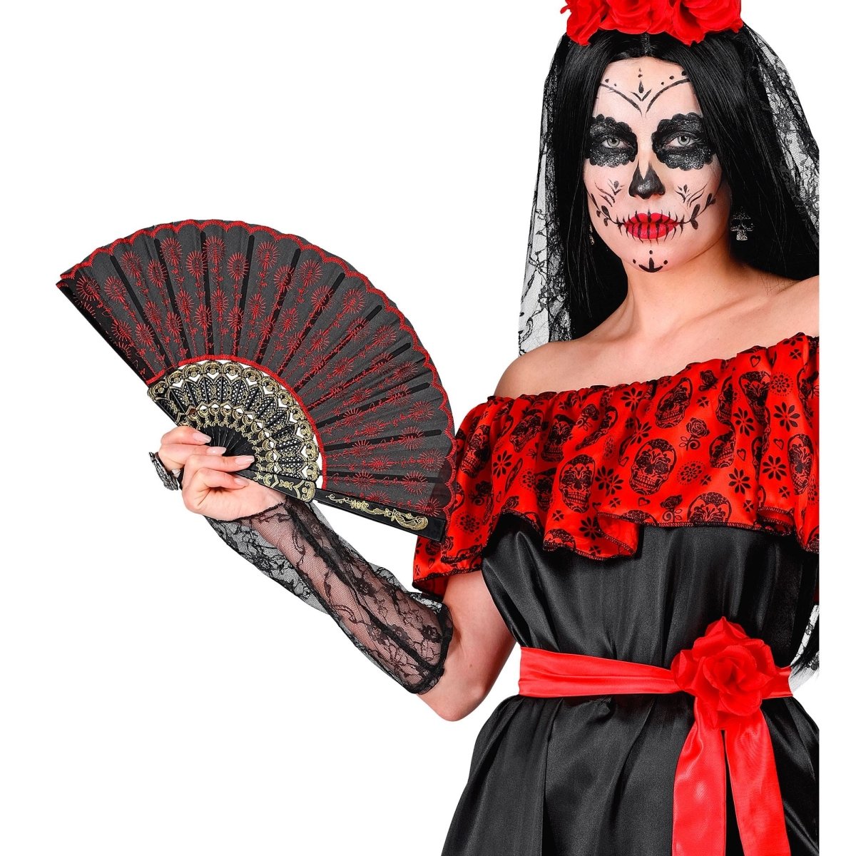 Añade un toque de elegancia a tu atuendo con este abanico clásico español. El diseño rojo y negro le da un aspecto elegante y llamativo, perfecto para bailar, fiestas de disfraces o como accesorio decorativo.