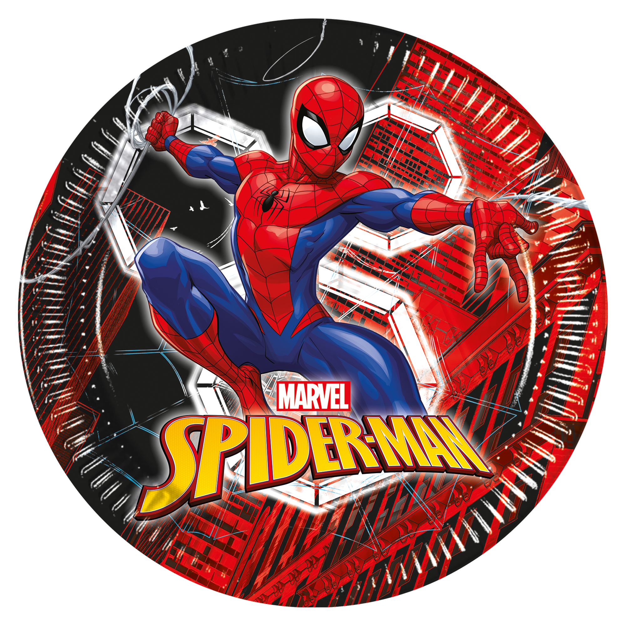 Completa la mesa de la fiesta con estos geniales platos de Spiderman. Perfectos para una fiesta infantil, un cumpleaños o una fiesta temática estilo superhéroes.
