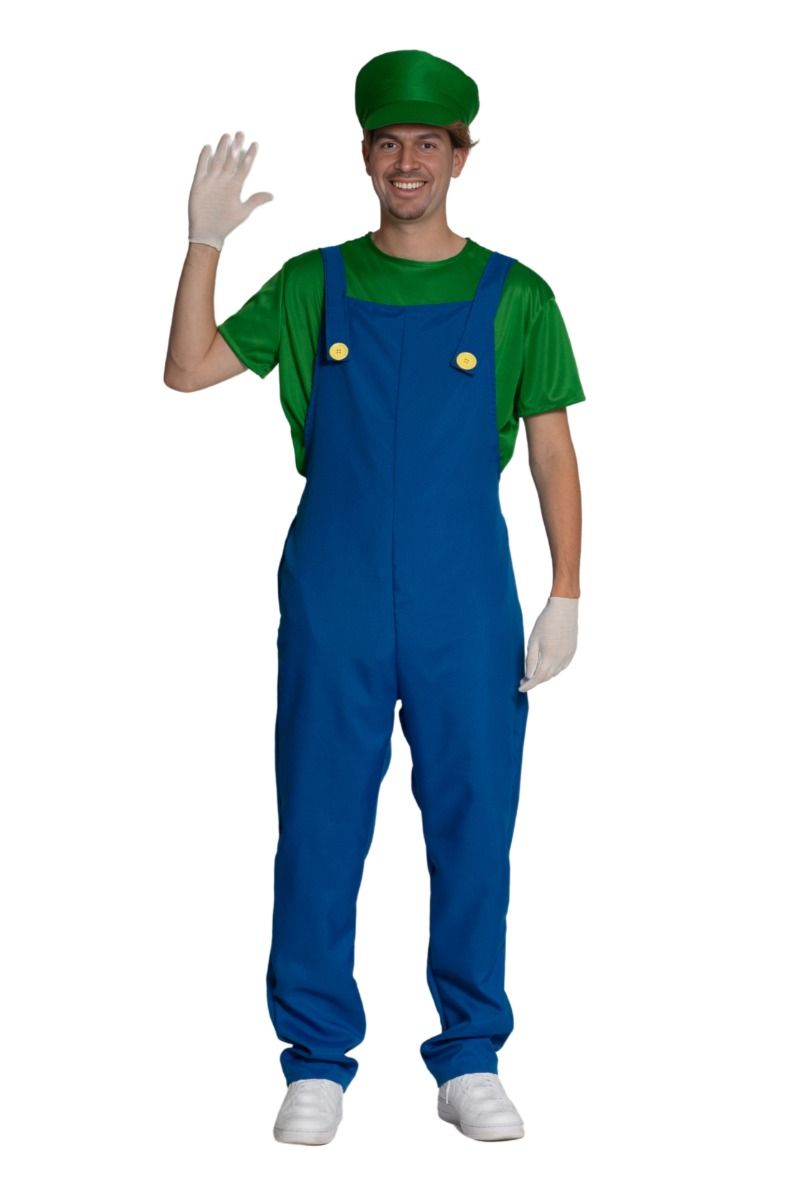 Traje Super Mario Verde Azul Hombre Luigi