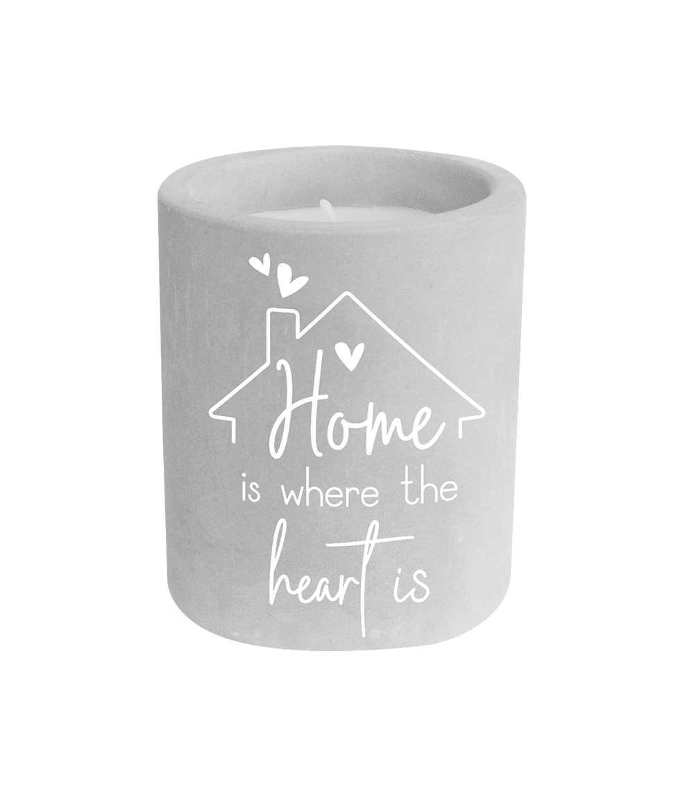 Vela de Cemento Gris El hogar es donde está el corazón 8cm