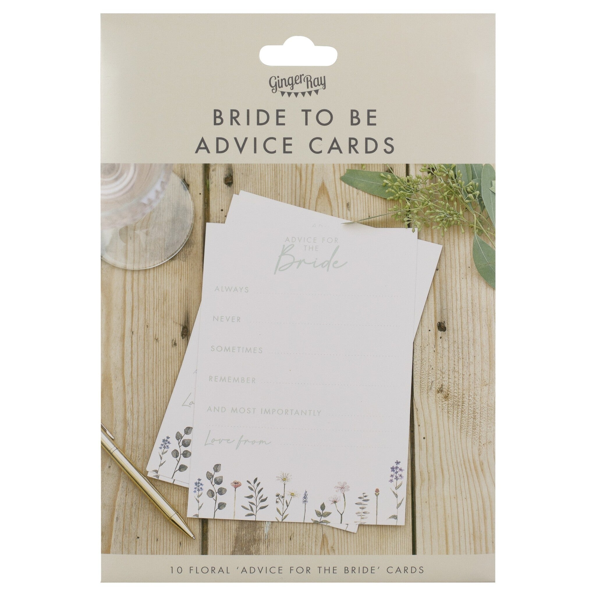 Cada paquete contiene 10 tarjetas florales con "Consejos para la novia", perfectas para dejar sabias palabras a la futura esposa, o para utilizar como alternativa al libro de visitas de la despedida de soltera.