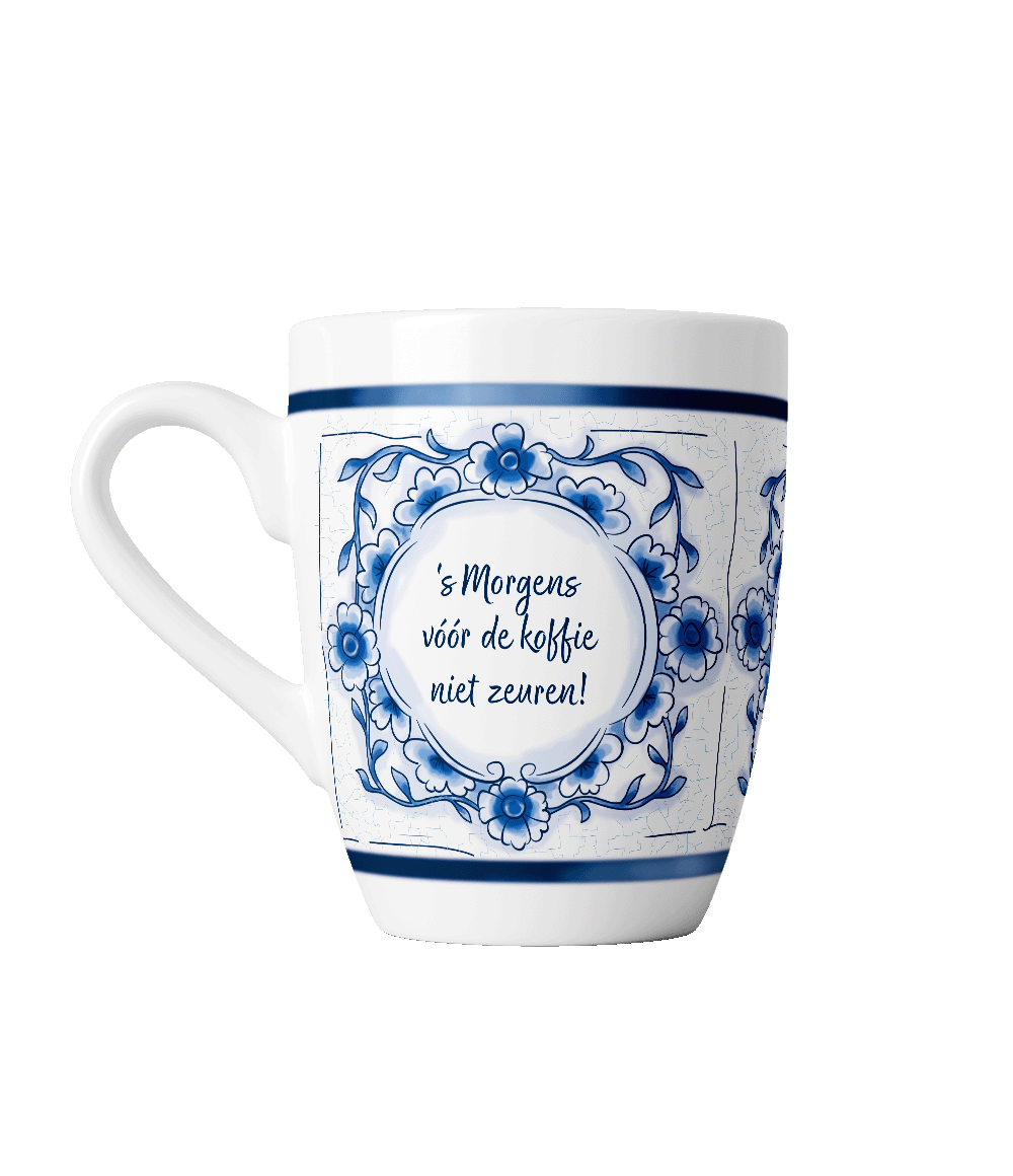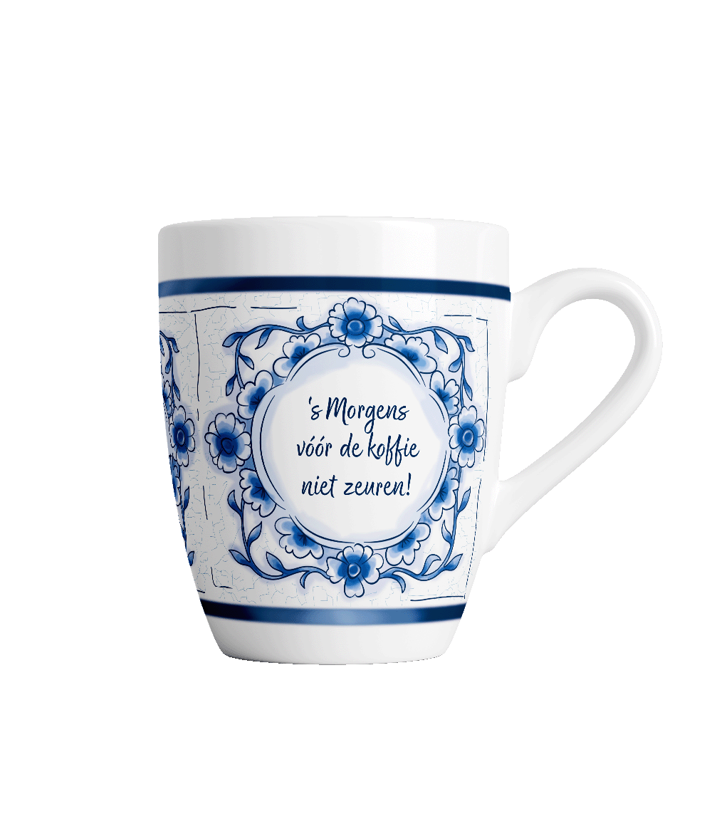 Dale un toque de encanto holandés a tu hogar con esta preciosa taza Azul de Delft de Paper Dreams. El clásico azul de Delft se combina con un toque moderno y humorístico, lo que convierte a esta taza en un popular artículo de regalo y colección. Esta versión lleva el divertido texto "Niet zeuren", perfecto para cualquiera a quien le guste un poco de sobriedad holandesa con su café o té.