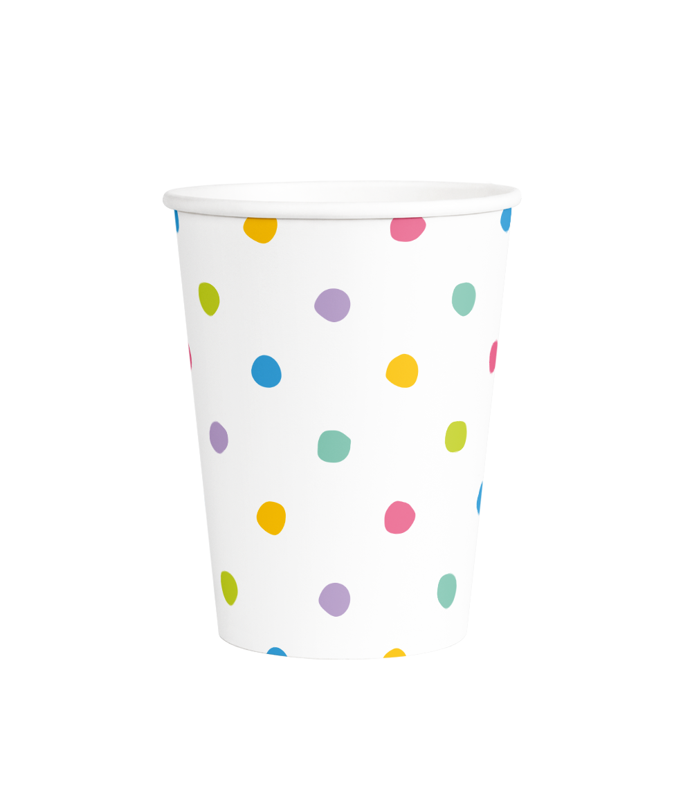 ¡Las Tazas - Lunares de fiesta alegran y dan color a cualquier mesa de fiesta! Perfectas para limonada, limonada u otras bebidas de fiesta. Gracias al fresco estampado de puntos, son ideales tanto para fiestas infantiles como para acogedores cumpleaños.
