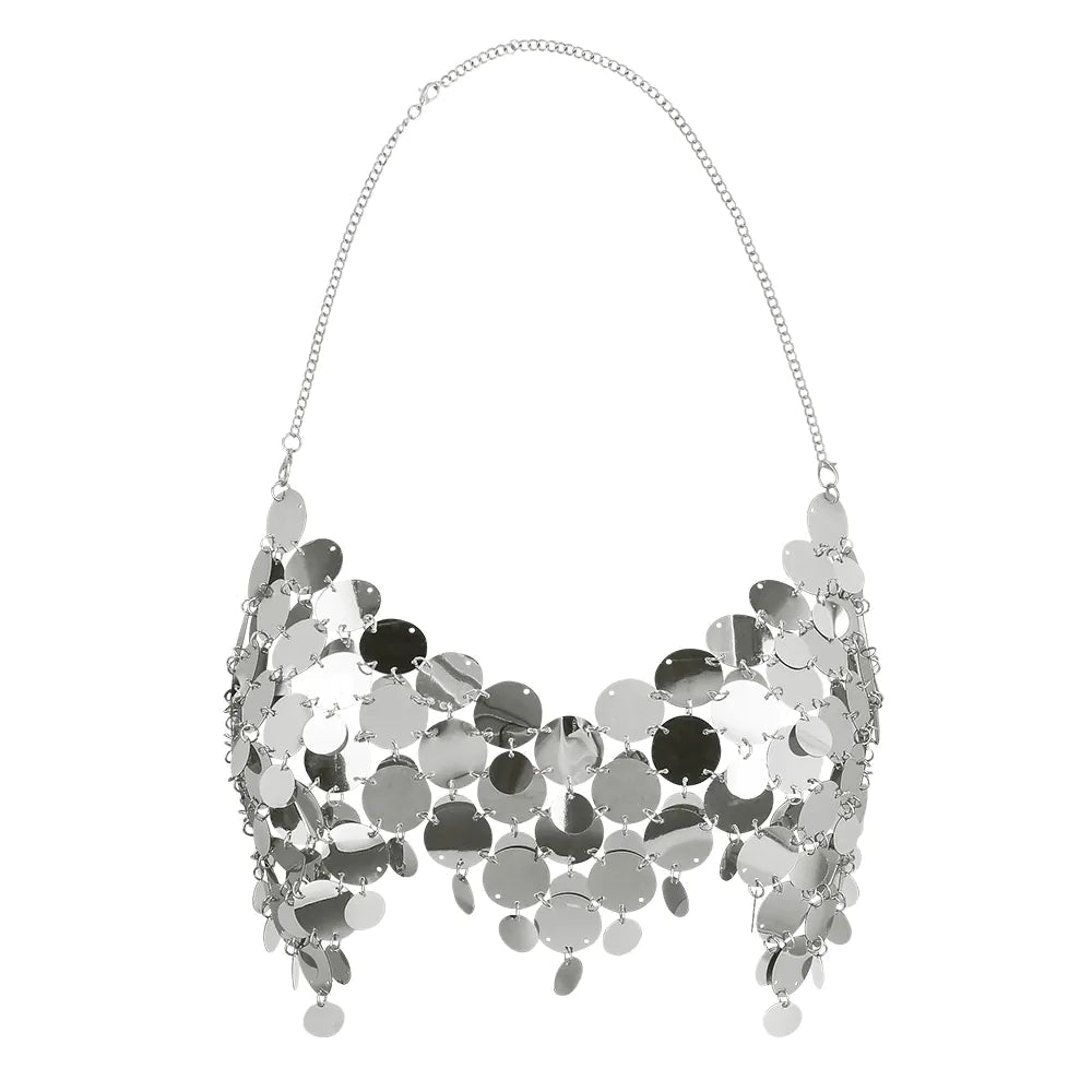 ¡Brilla en cualquier fiesta con este espectacular top de lentejuelas plateadas! Perfecto para festivales, una noche en la discoteca o una fiesta temática sexy. El reluciente top está decorado con grandes y llamativas lentejuelas que se mueven maravillosamente a cada paso. La espalda abierta con elegante cierre de eslabones garantiza un ajuste cómodo y regulable.