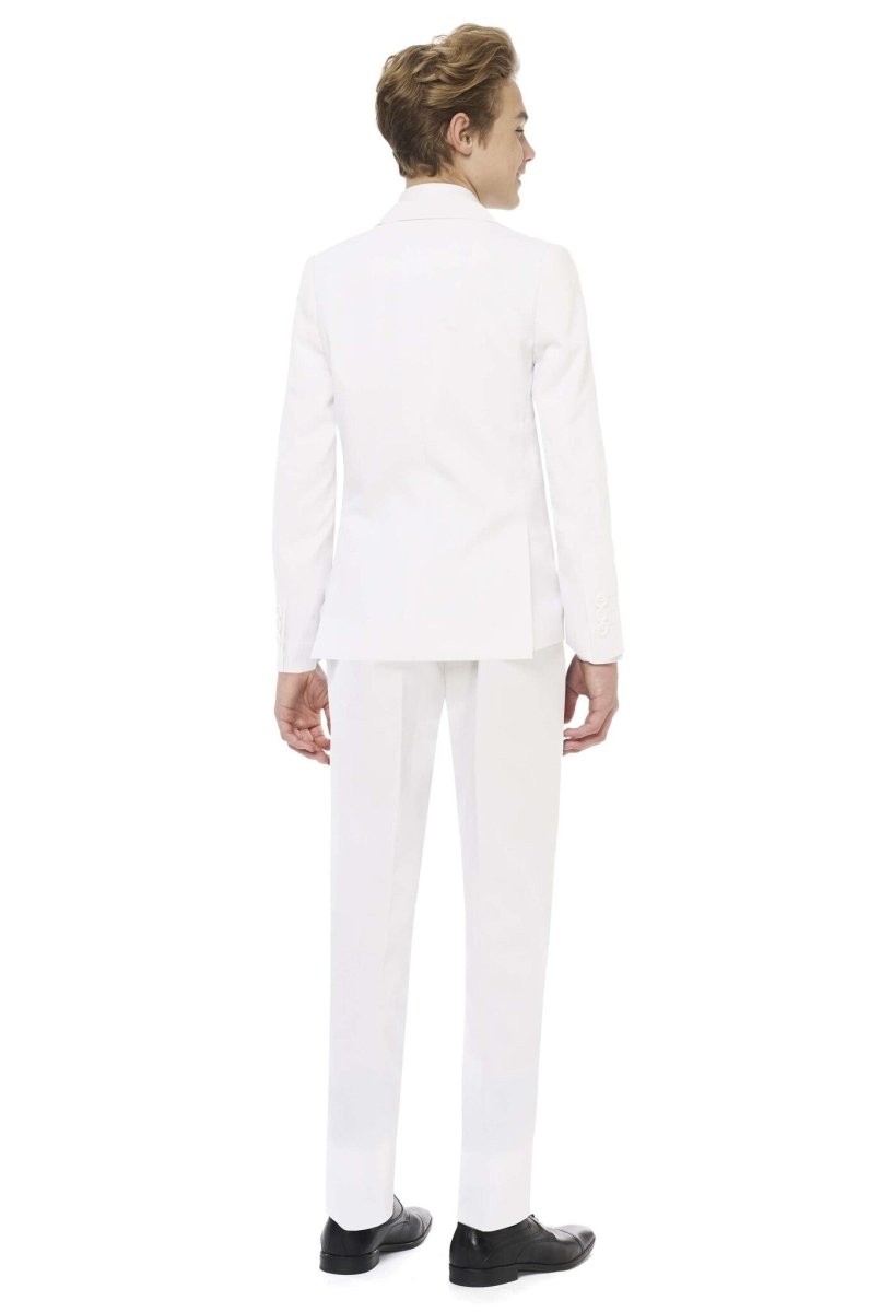 ¿Te atreves a vestir de blanco muscular de la cabeza a los pies? ¡Genial! Al fin y al cabo, un traje blanco de chico es el atuendo ideal para marcar tendencia en una ocasión especial. Y no te preocupes por las manchas, porque este traje se puede meter en la lavadora. Así podrás divertirte sin límites con él.
