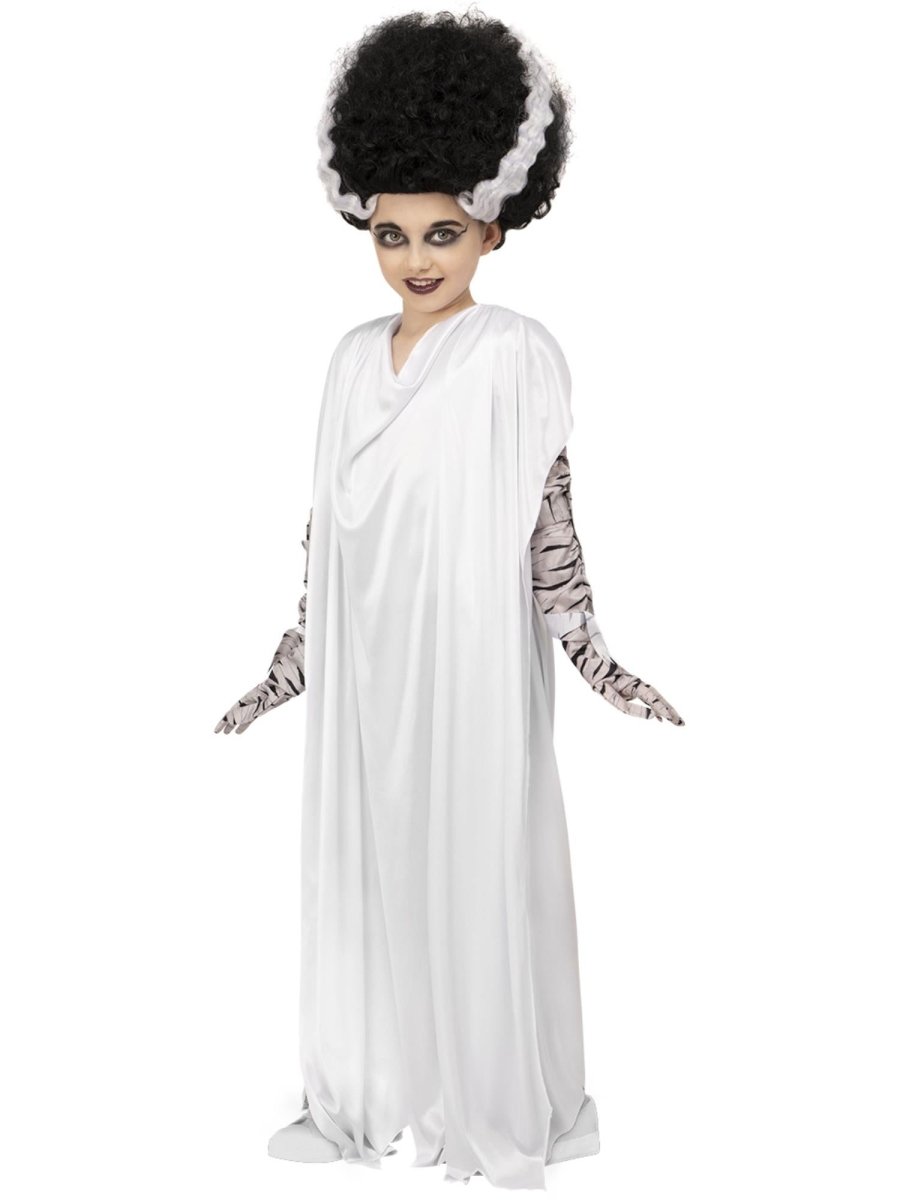 Conviértete en la icónica Novia de Frankenstein de los clásicos de Universal Monsters con este llamativo disfraz. Perfecto para Halloween, fiestas de terror, cosplay y eventos temáticos.
