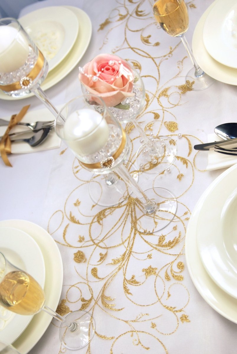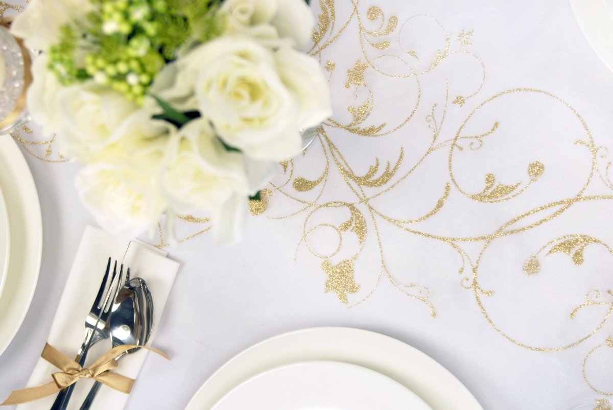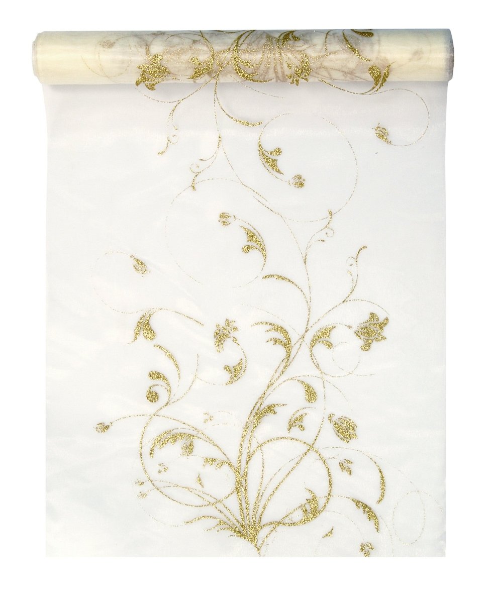 Vainilla Crema Organza Tela Flores Doradas 36cm 9m