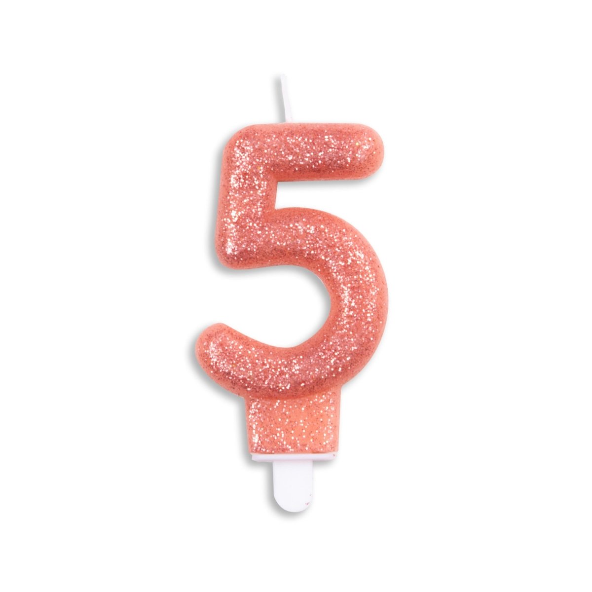 Vela 5 Años Oro Rosa Purpurina 7cm