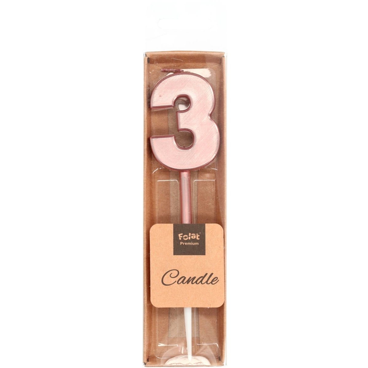 Vela Figura 3 Oro Rosa Metálico 15cm