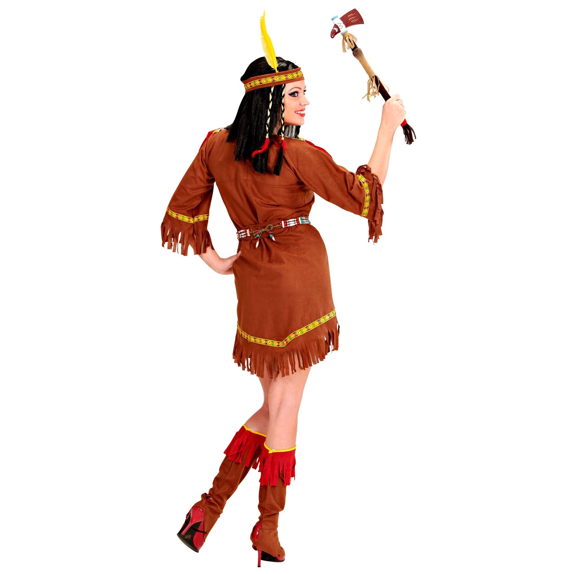 Descripción: vestido indio, delantal, cubrezapatos, diadema con pluma