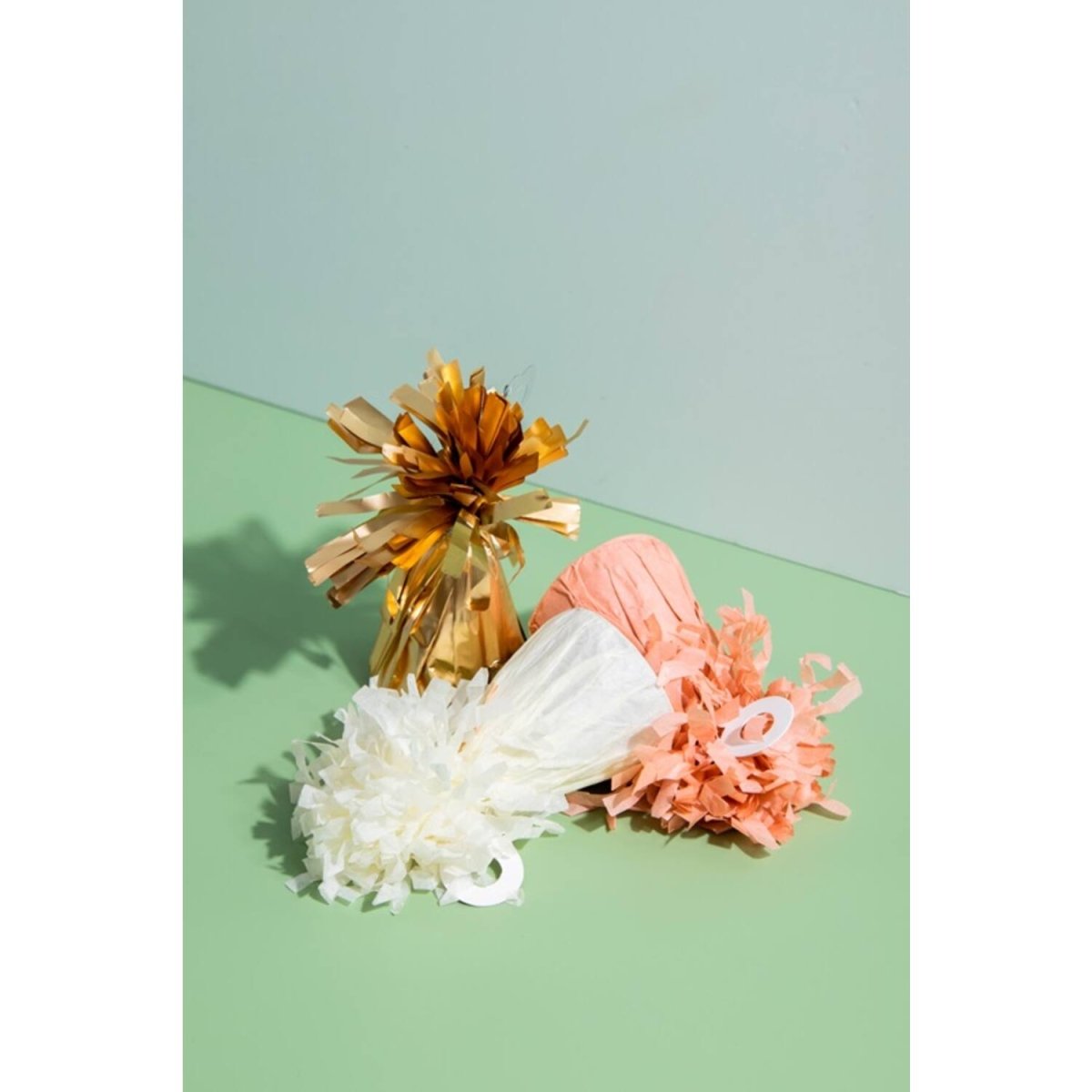 Que los globos llenos de helio no vuelen, sino que floten en el aire. Por ejemplo, para utilizar en las siguientes fiestas/fiestas Cumpleaños, Fiesta infantil, Aniversario. Este peso para globos está envuelto en papel y tiene flecos en la parte superior. Combina perfectamente con nuestra colección de globos de aluminio (formas y números) con acabado ultramate.